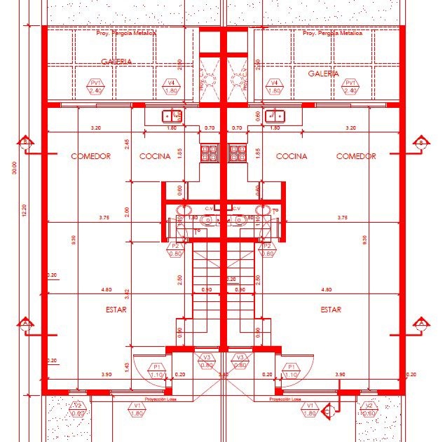 *Terminación interior con base de concreto castigado con terminación de yeso.